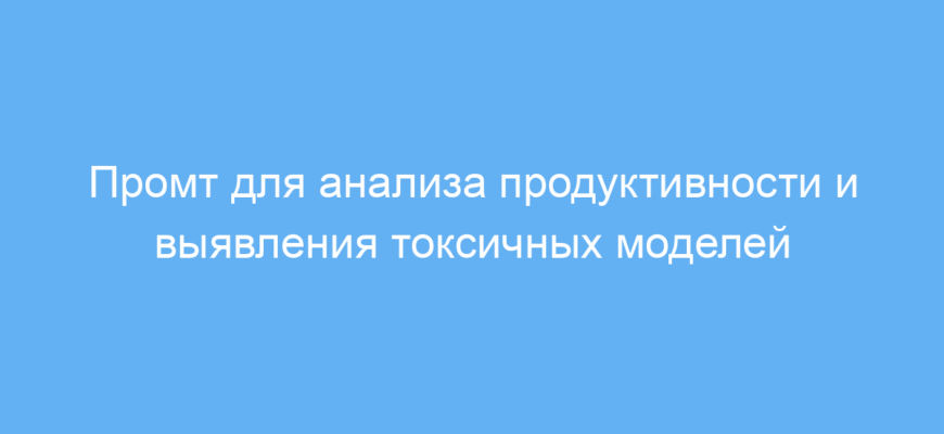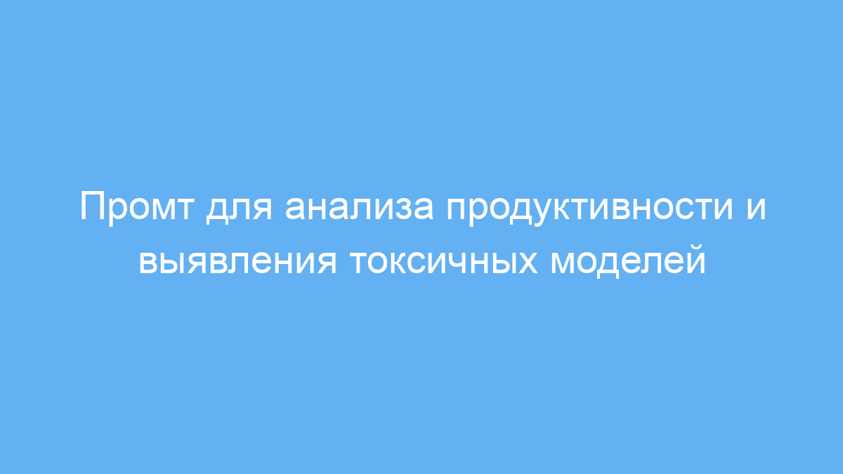 Данный промт будет полезен тем, кто хочет понять свой уровень продуктивности и выявить возможные негативные, токсичные шаблоны поведения, мешающие эффективно работать или учиться. Он помогает оценить состояние баланса между работой и отдыхом, а также выявить признаки переутомления и стресса.