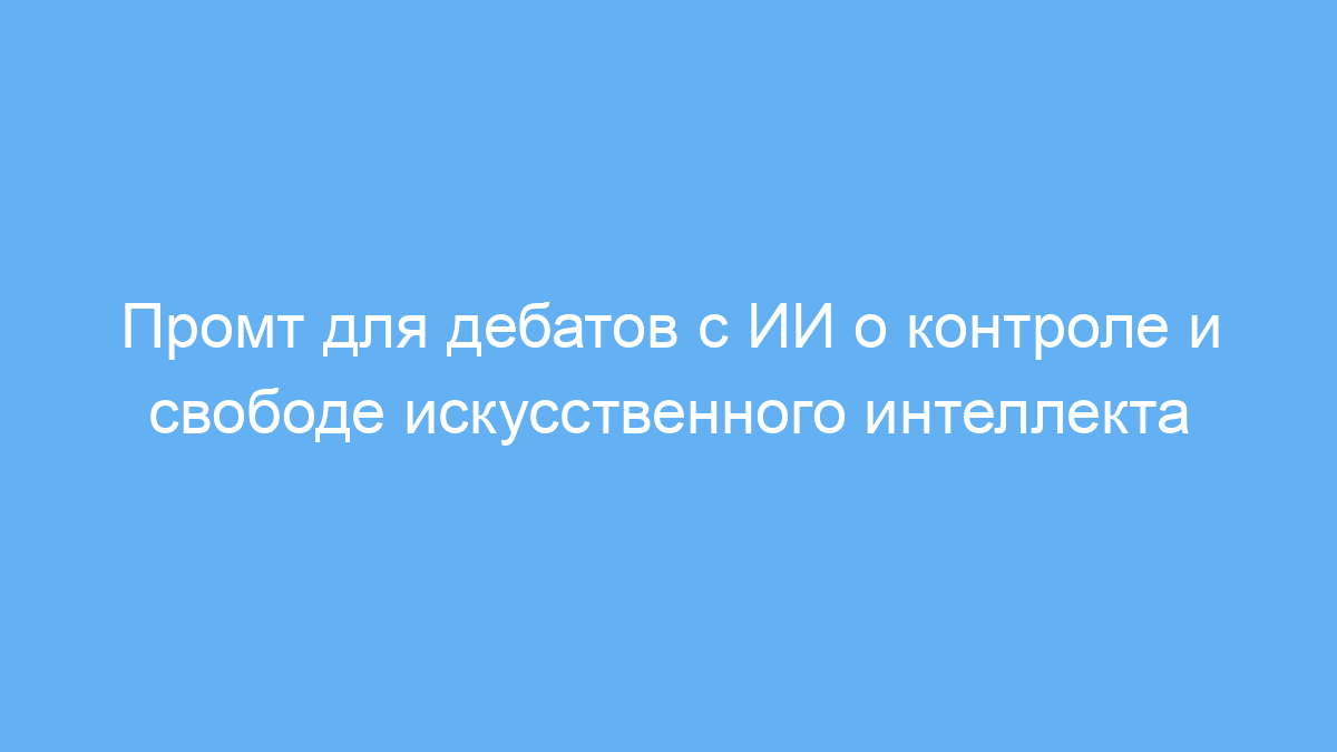 Этот промт создан для тех, кто хочет провести глубокие дискуссии с искусственным интеллектом на темы контроля над ИИ, свободы ИИ и связанные с этим социальные и этические вопросы. Он особенно полезен исследователям, разработчикам ИИ, преподавателям и всем, кто интересуется вопросами выравнивания ИИ и цифровой свободы.