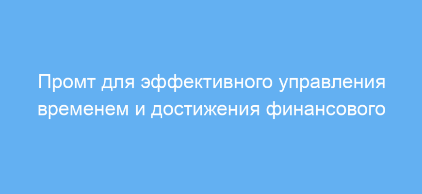 Использование этого промта помогает быстро получить структурированные и актуальные рекомендации по тайм-менеджменту, адаптированные под финансовые цели и множество проектов. Вы экономите время и силы на поиске методов, получая проверенные и оптимальные стратегии от ИИ.