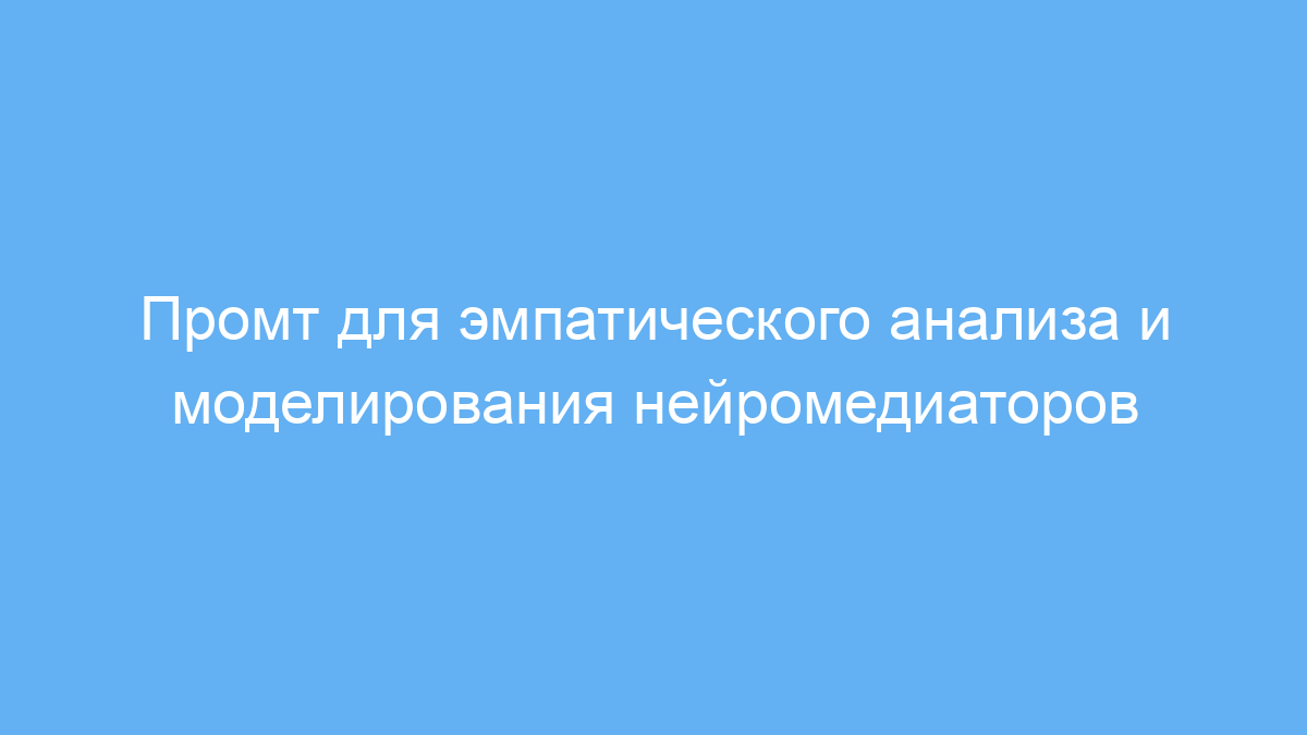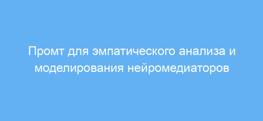 Этот промт создан для тех, кто работает с нейросетями и хочет получить глубокий эмпатический анализ человеческих эмоций и реакций в разных ситуациях. Он полезен психологам, специалистам по ИИ, авторам, которые исследуют внутренние переживания персонажей, а также всем, кто изучает влияние химии мозга на поведение.
