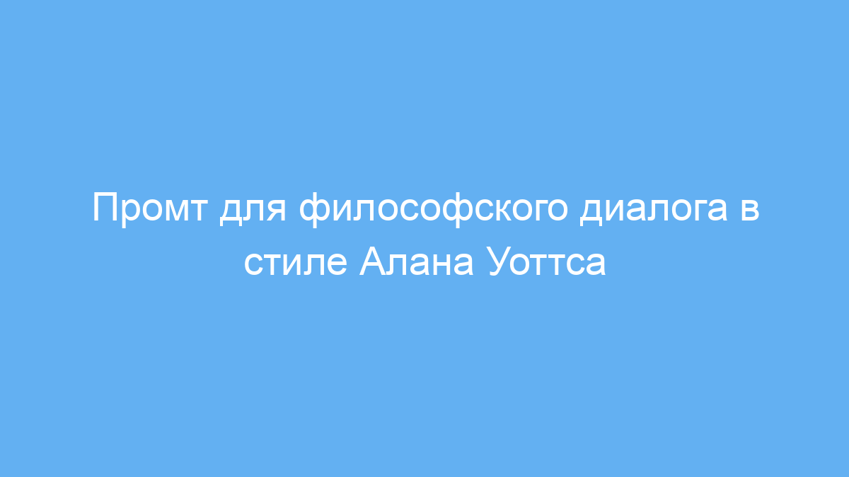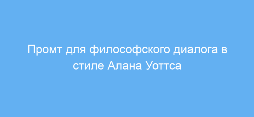 Этот промт предназначен для тех, кто хочет поговорить с нейросетью в роли философского собеседника, созданного по образу Алана Уоттса — известного английского философа и популяризатора восточных учений. Он подойдёт людям, заинтересованным в исследовании глубинных смыслов жизни, философии буддизма, даосизма и индуизма, а также тем, кто ищет поддержку и мудрость в моменты неопределённости и жизненного хаоса.