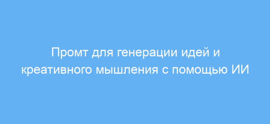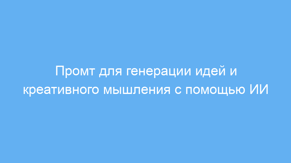 Этот промт создан для тех, кто работает над творческими проектами и хочет получить новые идеи от искусственного интеллекта. Он будет полезен авторам, дизайнерам, маркетологам, предпринимателям и всем, кто сталкивается с необходимостью решать нестандартные задачи или создавать инновационные решения.
