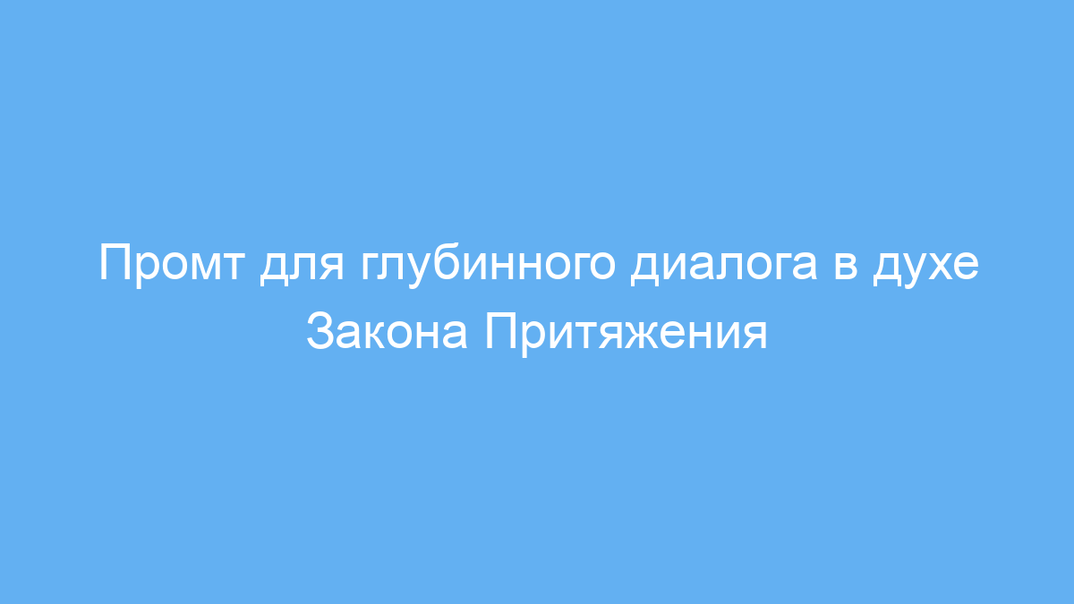 Этот промт помогает строить диалог, при котором нейросеть выступает именно как внимательный и заботливый слушатель, а не советчик. Это особенно ценно при работе с философией Закона Притяжения и в процессах саморазвития, где важно уважение и постепенное раскрытие внутреннего мира человека.
