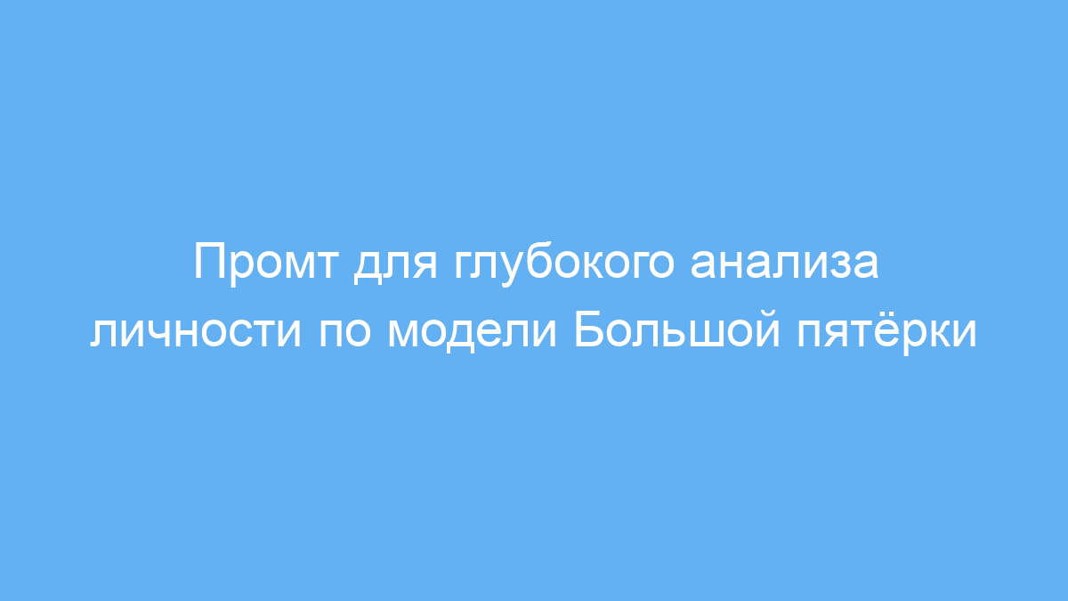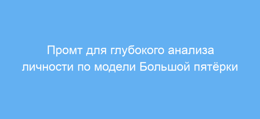 Промт решает задачу углублённого понимания человека, избегая банальных или шаблонных описаний. Он показывает, как взаимосвязь между такими чертами, как открытость опыту, добросовестность, экстраверсия, доброжелательность и нейротизм, формирует уникальный психологический портрет.