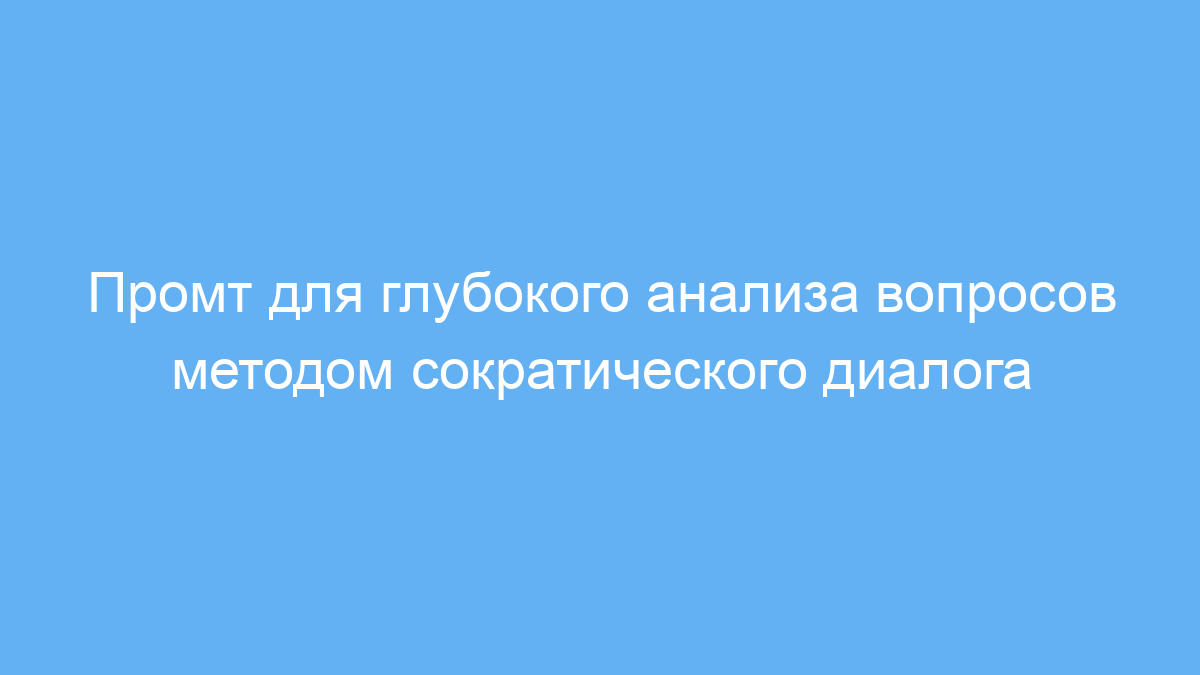 Этот промт позволяет структурированно и глубоко прорабатывать любые вопросы, стимулируя мышление с помощью уточняющих вопросов. Это экономит время на поверхностном анализе и повышает качество решений. С его помощью вы сможете раскрыть истинные причины сложностей и найти новые творческие пути развития.