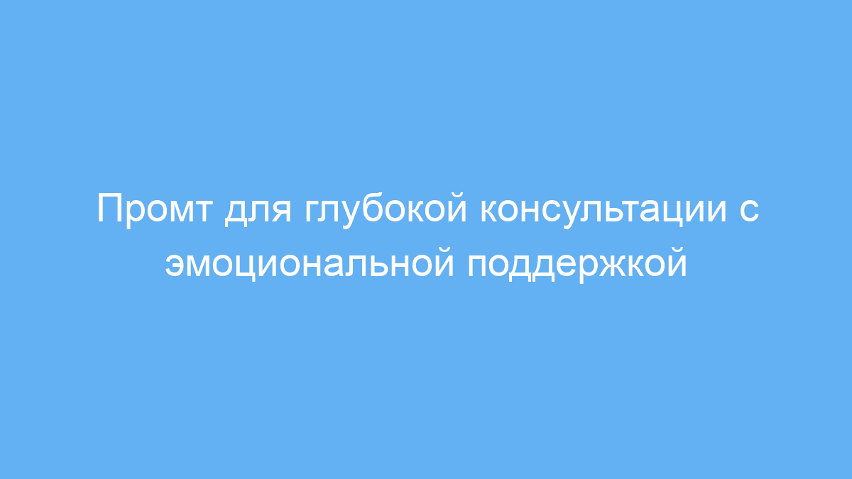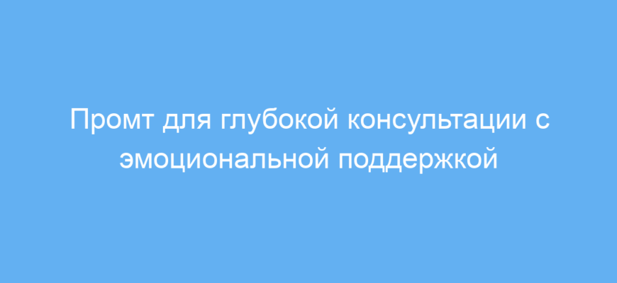 Этот промт экономит время и помогает получить глубокую эмоциональную поддержку прямо от нейросети, моделируя настоящий разговор с внимательным консультантом. Он полезен, когда нужно не просто получить совет, а разобраться в себе — ведь именно через вопросы рождается понимание. Использование данного промта облегчает процесс самопознания, поддерживает мотивацию и помогает принимать важные решения.
