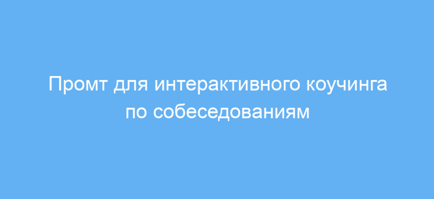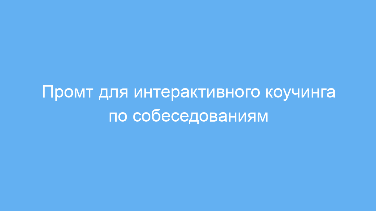 Промт работает как виртуальный коуч — нейросеть задаёт вопросы, оценивает ответы и даёт развернутый разбор ваших навыков: от коммуникации и языка тела до подачи опыта и уверенности. В начале взаимодействия вы вводите своё имя, текущую профессию или желаемую должность, а также темы, которые хотите отработать — например, «вопросы о командной работе» или «презентация достижения».