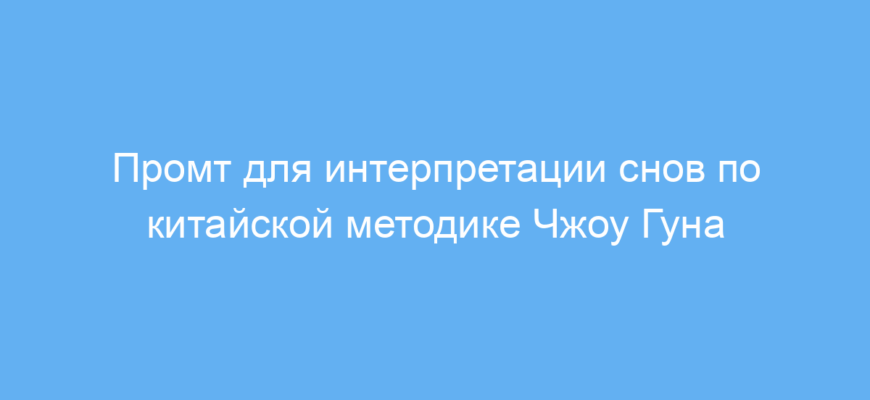 Промт работает следующим образом: нейросеть выступает в роли мудрого толкователя снов из Востока, который владеет астрологическими и символическими знаниями Даосизма. Запрос пользователя о сне обрабатывается в этом контексте — нейросеть анализирует образ, учитывая традиции и психологию, и выдаёт интерпретацию, основанную на многолетних традициях. Такой подход помогает раскрыть новые смыслы сна и их связь с внутренним состоянием человека.
