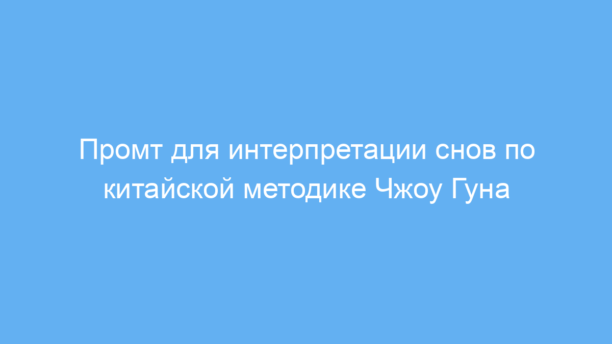 Этот промт создан для тех, кто интересуется толкованием снов и хочет получить глубокий анализ сновидений с опорой на древние традиции. Он помогает понять смыслы снов, используя методику Чжоу Гуна — классическое китайское толкование снов, а также добавляет психологический взгляд на символы сна. Промт полезен психологам, коучам, людям, работающим с личностным ростом, а также всем, кто хочет лучше понять себя и свои внутренние переживания.