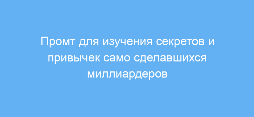 По сути, промт задаёт нейросети запрос на разъяснение важных аспектов богатства и успеха у само сделавшихся миллионеров. Это экономит ваше время на поиск информации и формирует концентрированные советы в удобном формате.