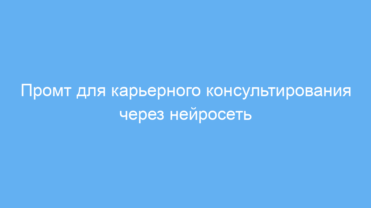 Этот промт создан для тех, кто хочет получить персонализированные советы по выбору и развитию карьеры с помощью нейросети. Он поможет людям, не уверенным в своих дальнейших карьерных шагах, или тем, кто ищет профессиональное ориентирование и хочет понять, какие профессии подходят именно им.