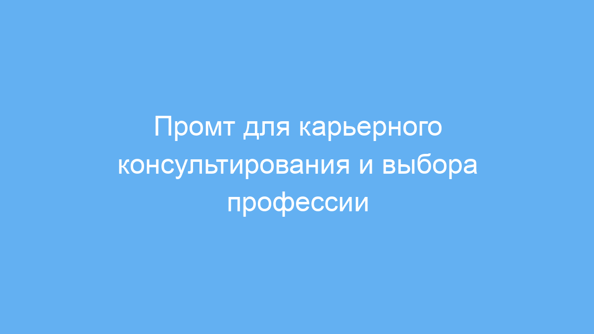 - Промт хорошо работает для общего карьерного консультирования, но не заменяет консультацию с профориентологом, если нужны глубокие психологические или профессиональные тесты.