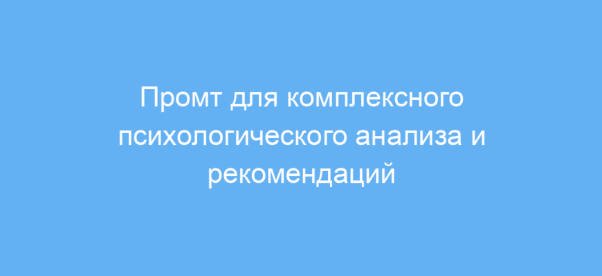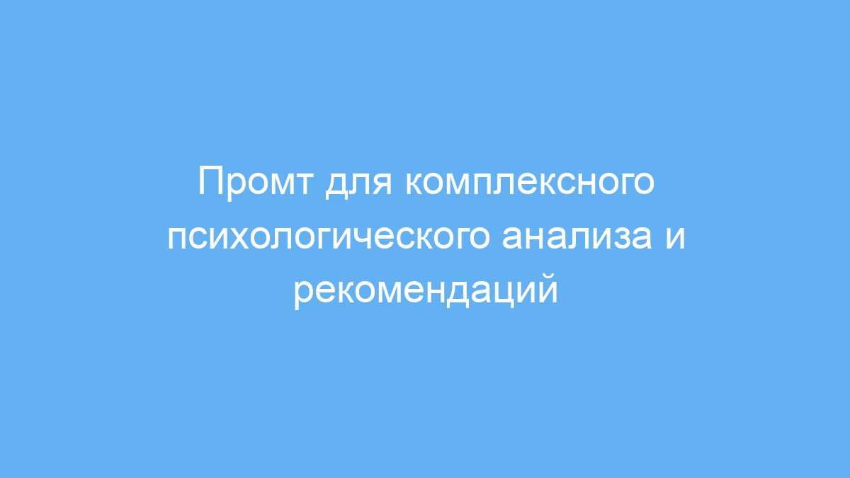Использование этого промта позволяет быстро получить глубокий и многогранный психологический анализ, который объединяет разные направления и методы. Это экономит время на исследование теорий и помогает сформировать чёткие, научно обоснованные рекомендации, полезные как для практики, так и для учебы.