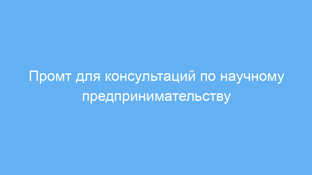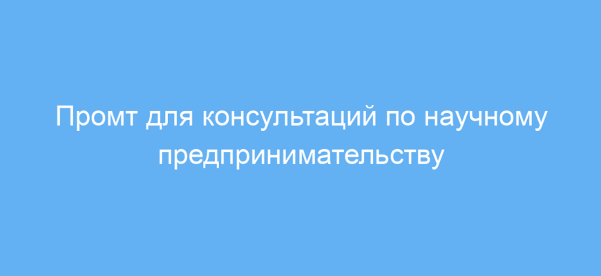 Этот промт экономит время и силы, помогая получить понятные и развернутые консультации по сложным вопросам научного предпринимательства. Он помогает подготовиться к запуску и развитию инновационного бизнеса, делая сложные темы доступными каждому.