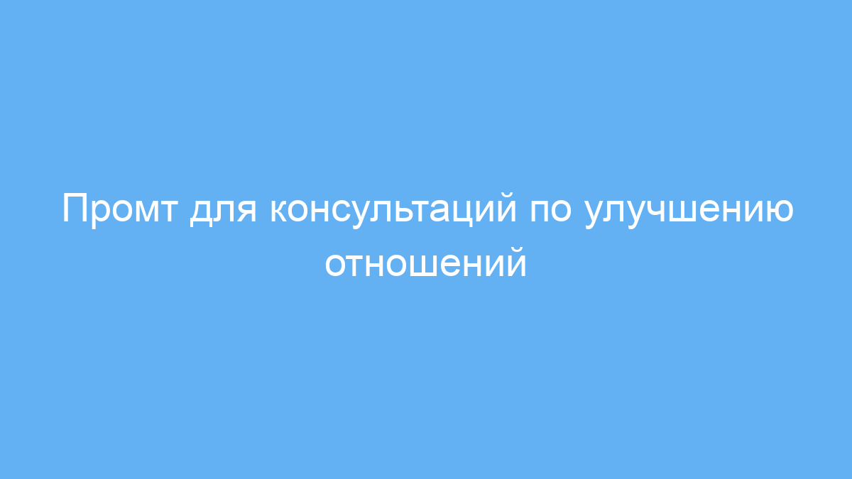 Промт помогает получить структурированные рекомендации и конкретные шаги для улучшения отношений, исходя из описанной пользователем ситуации. Он направлен на анализ личных проблем и предлагает полезные способы их решения.