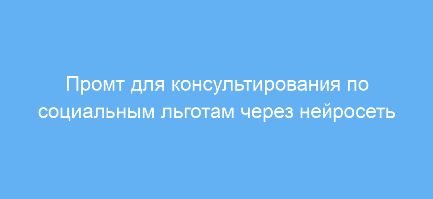 Этот промт предназначен для тех, кто хочет использовать нейросети для создания грамотных и чутких консультаций по государственным социальным льготам. Он будет полезен консультантам, социальным работникам, волонтёрам, а также разработчикам сервисов и чат-ботов, где требуется помощь с вопросами поддержки населения.