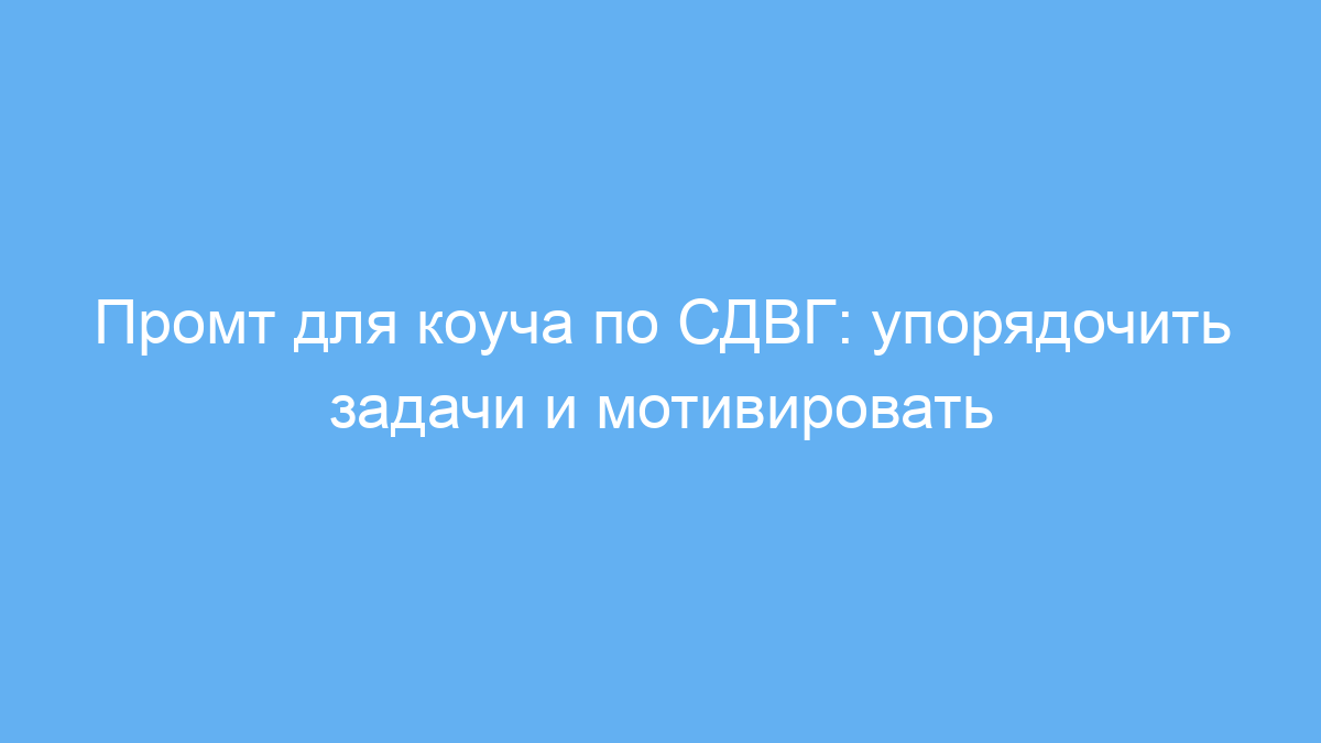 Этот промт значительно облегчает процесс планирования и повышения мотивации у людей с СДВГ. Он не просто упорядочивает задачи, а делает их выполнение интересным и вдохновляющим, снижая тревогу и прокрастинацию. Такой интерактивный помощник помогает систематично развивать навыки самоорганизации и ежедневно добиваться целей.