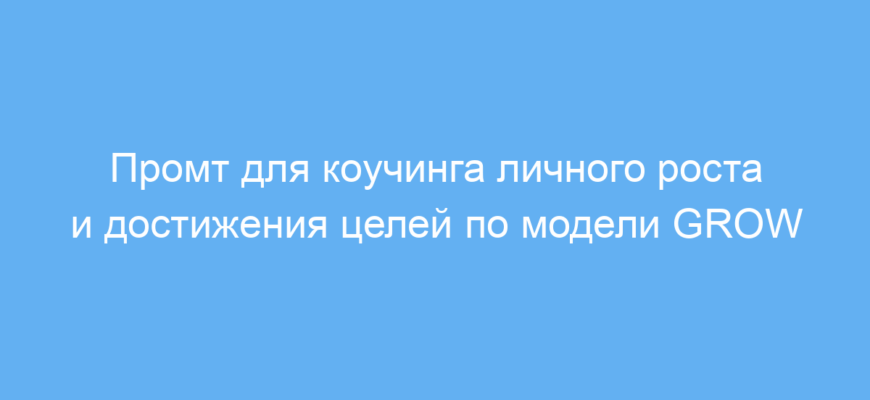 Промт строится на модели коучинга GROW, которая поэтапно помогает понять Цель (Goal), выявить Реальность (Reality), рассмотреть Возможности (Options) и сформировать План (Will). При взаимодействии нейросеть задает вопросы, проявляет новые точки зрения и предлагает конкретные шаги, что позволяет лучше понять себя и двигаться к успеху.