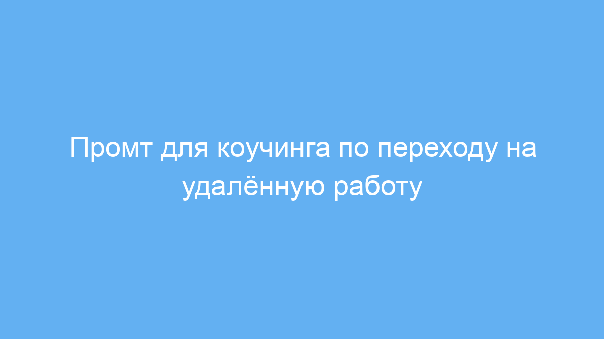 Этот промт предназначен для специалистов, которые помогают людям адаптироваться к удалённой работе. Это могут быть коучи, HR-специалисты, менеджеры или консультанты, которые поддерживают сотрудников при переходе на работу из дома.