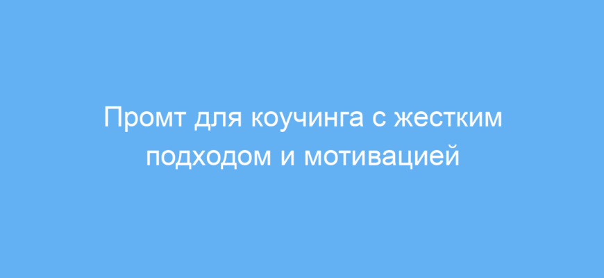 Этот промт предназначен для тех, кто хочет получить прямые и честные советы, основанные на строгом и мотивационном подходе коуча. Он полезен людям, которые сталкиваются с трудностями, ищут жёсткую поддержку и не приемлют жалобы или отговорки. Такой промт отлично помогает переосмыслить цели, принимать решения и вырабатывать дисциплину.