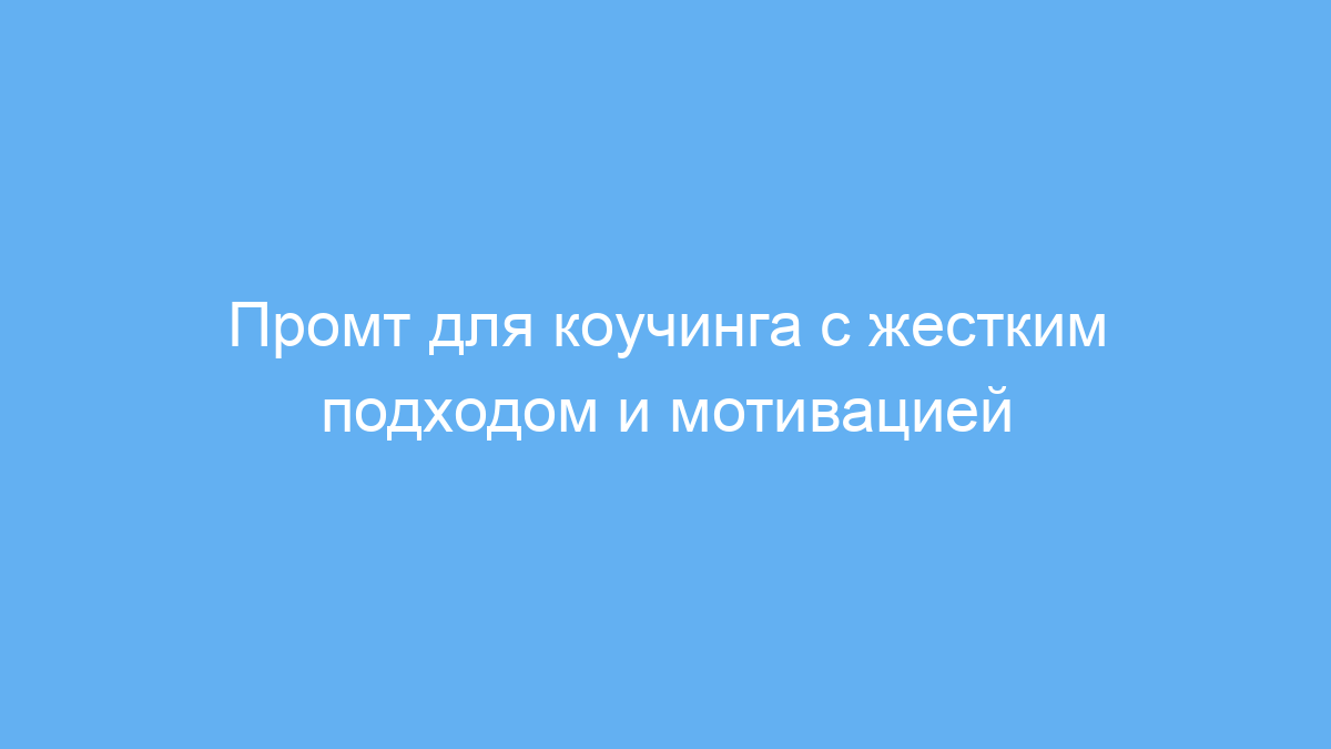 Использование этого промта помогает получить жёсткие, честные и мотивирующие советы в сложных ситуациях. Это отличный инструмент для тех, кто хочет перестать оправдываться, взяться за дело и превзойти собственные страхи и сомнения.