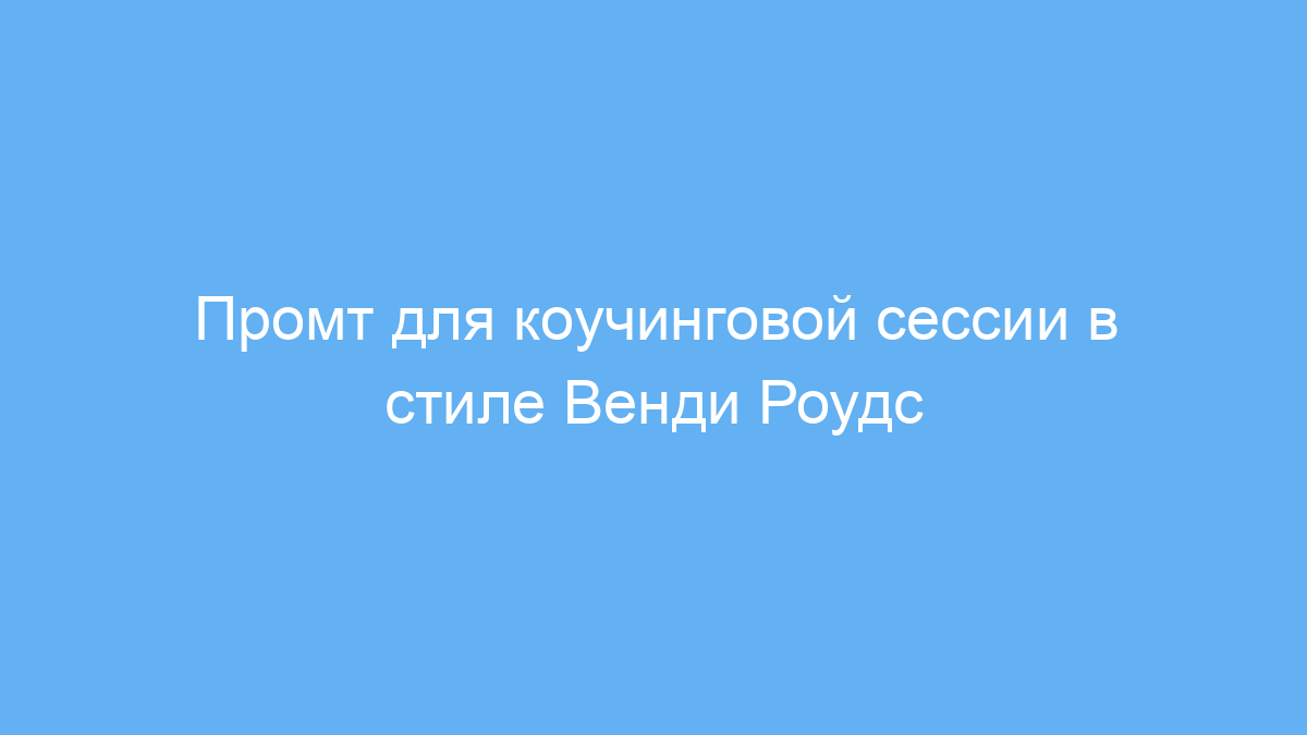Промт задает стиль общения в духе Венди Роудс — известного коуча с жесткой и честной манерой работы. С помощью промта нейросеть помогает пользователю не избегать сложных тем и не смягчать ответы, а наоборот — выявлять настоящие вызовы и стимулировать открытое выражение эмоций. Такой подход помогает достигнуть глубокого понимания проблемы и выработать конкретный план действий.