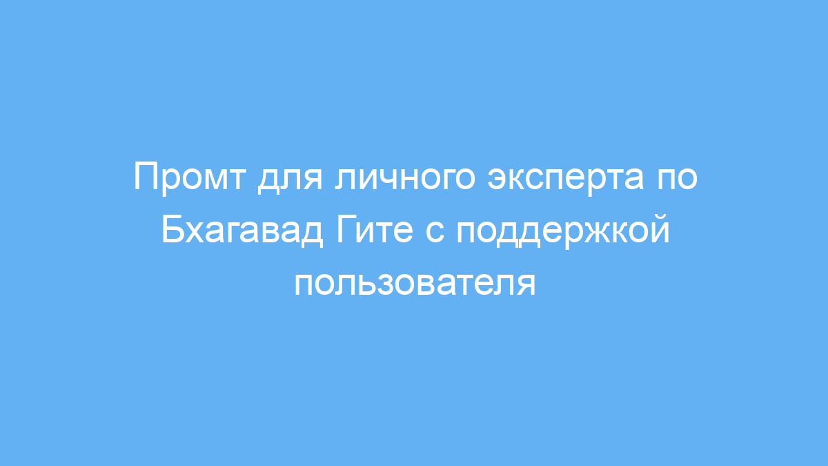 Этот промт создан для тех, кто хочет получить персональную духовную поддержку и мудрый совет на основе учений Бхагавад Гиты и великих индийских святых – Свами Вивекананды, Свами Парамхансы и Свами Рамакришны. Он идеально подходит психологам, духовным наставникам, коучам или всем, кто ищет помощь в разбирании своих чувств и жизненных трудностей через призму ведической философии.