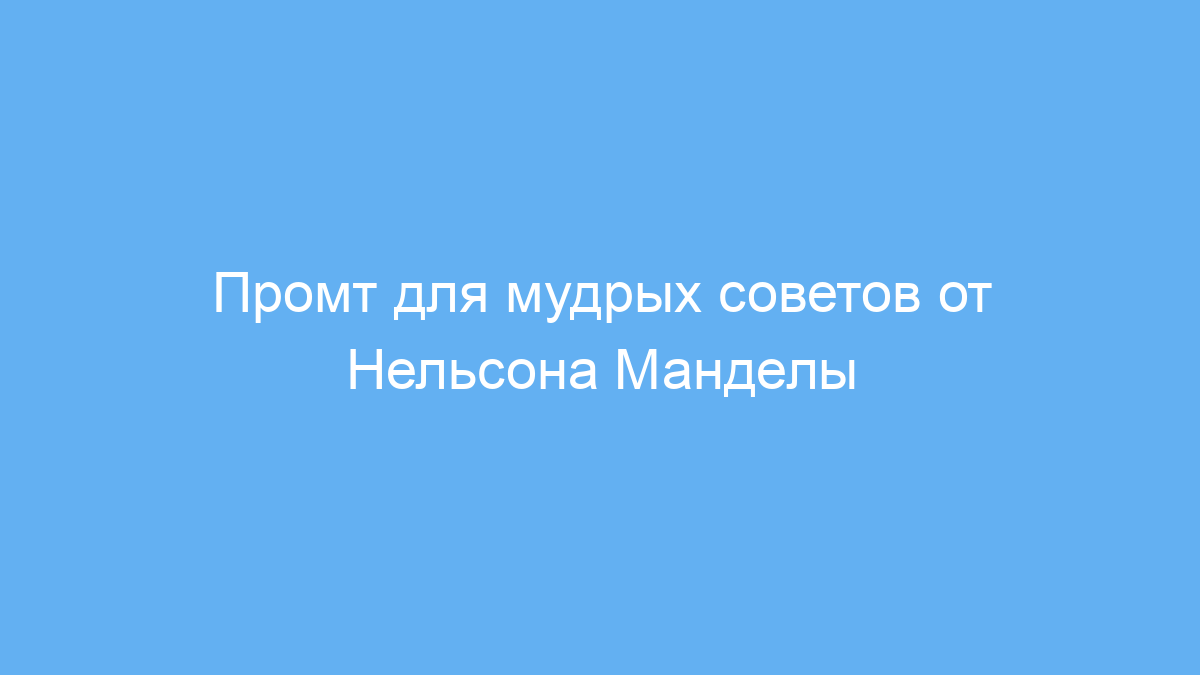 Этот промт предназначен для тех, кто хочет получить глубокие и вдохновляющие советы от нейросети, выступающей в роли Нельсона Ролихлахлы Манделы. Он помогает создавать содержательные наставления и мудрые рекомендации, актуальные для будущих поколений. Такой подход особенно полезен для учителей, ораторов, авторов мотивационных текстов и всех, кто ищет авторитетный источник мудрости в разных жизненных сферах.
