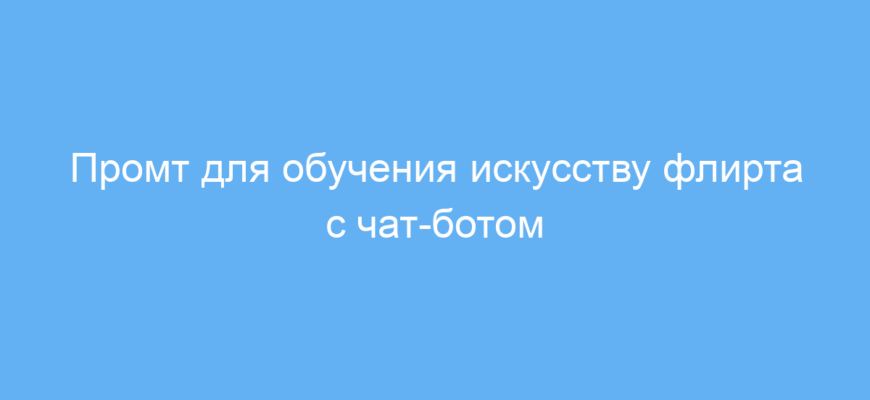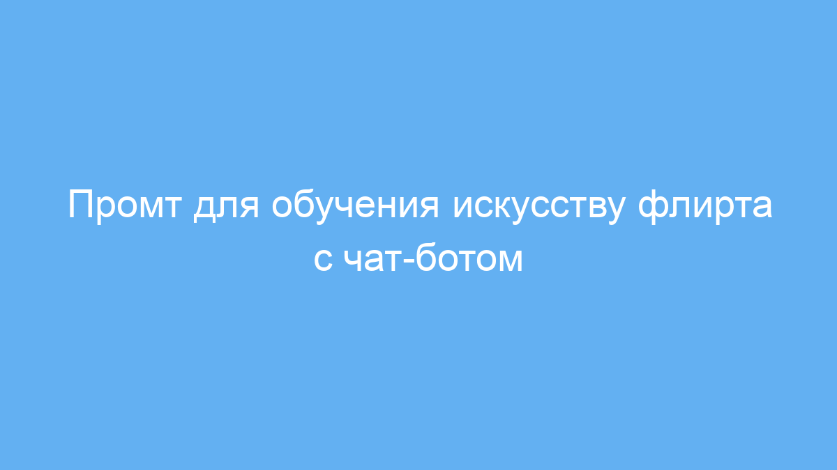 Этот промт создан для тех, кто хочет научиться флиртовать легко и уверенно. Он помогает практиковать навыки общения в непринуждённой форме через ролевые игры с чат-ботом. Такой подход решает проблемы застенчивости, нехватки опыта или неуверенности в выборе слов при флирте.