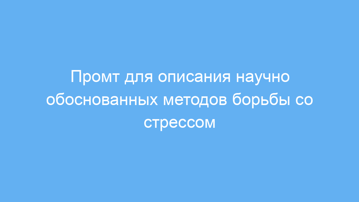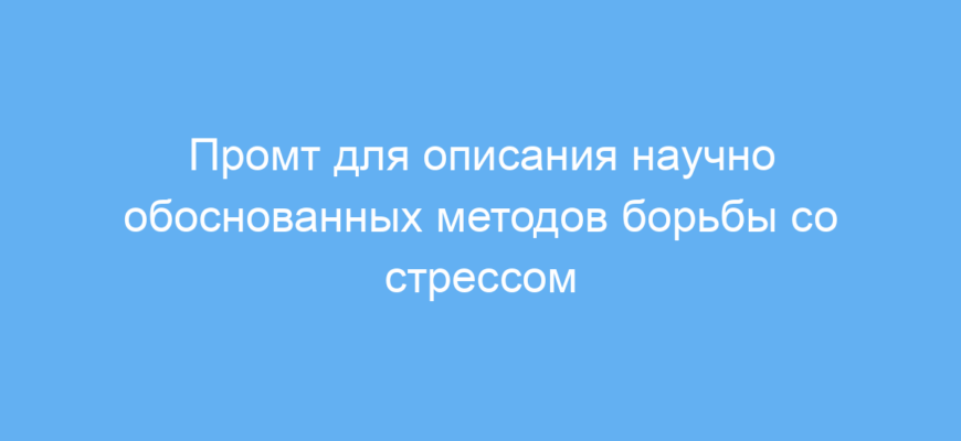 Использование данного промта позволяет быстро получить структурированное, научно обоснованное описание методов борьбы со стрессом. Это экономит время на поиск информации и помогает создавать качественный контент для обучения или личного развития.