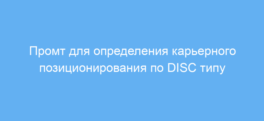 Перед использованием промта убедитесь, что у вас есть точный и корректный DISC тип — это основа для аналитики. Встраивайте в переменную {{DISC Тип}} один из 4 базовых типов (например, D, I, S, C) или их комбинации, если она известна.