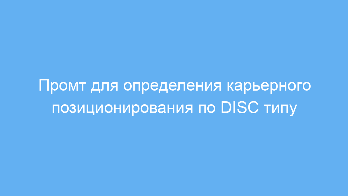Данный промт помогает быстро и системно определить оптимальные варианты карьерного позиционирования на основе вашего DISC типа. Такой анализ экономит время, снижает неопределённость и даёт практические рекомендации с учётом рынка, ваших сильных сторон и возможностей построить личный бренд.