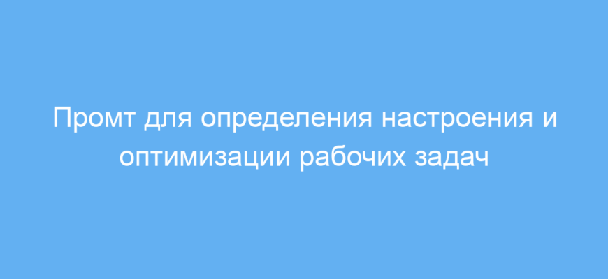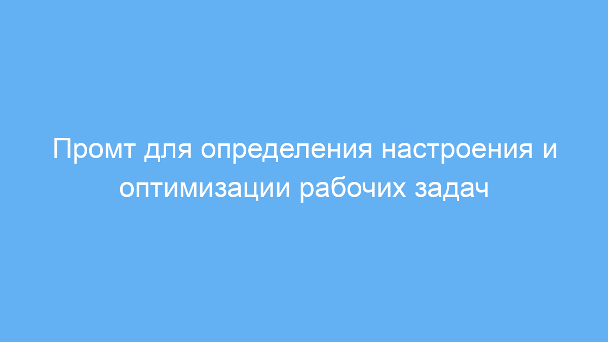 Промт позволяет учитывать настроение пользователя при планировании работы, что помогает повысить эффективность и снизить стресс. Он облегчает выбор оптимальных задач для текущего эмоционального состояния, делает организацию рабочего дня более осознанной и продуктивной.