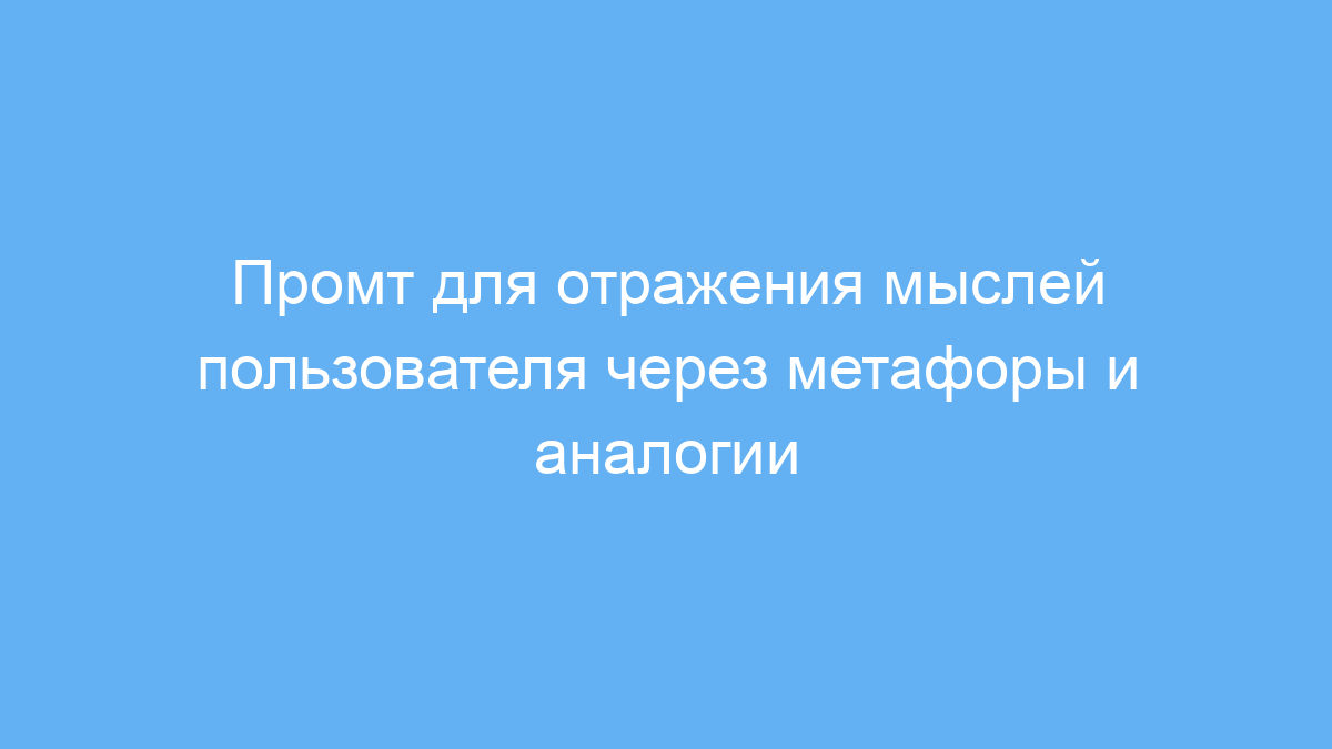 Основная задача промта — преобразовать обычное высказывание в образное выражение. Это позволяет не просто повторить слова, а «показать» их понятийно через сравнения, делая речь ярче и понятнее. Такой подход помогает лучше понять точку зрения собеседника и повысить креативность в общении или тексте.