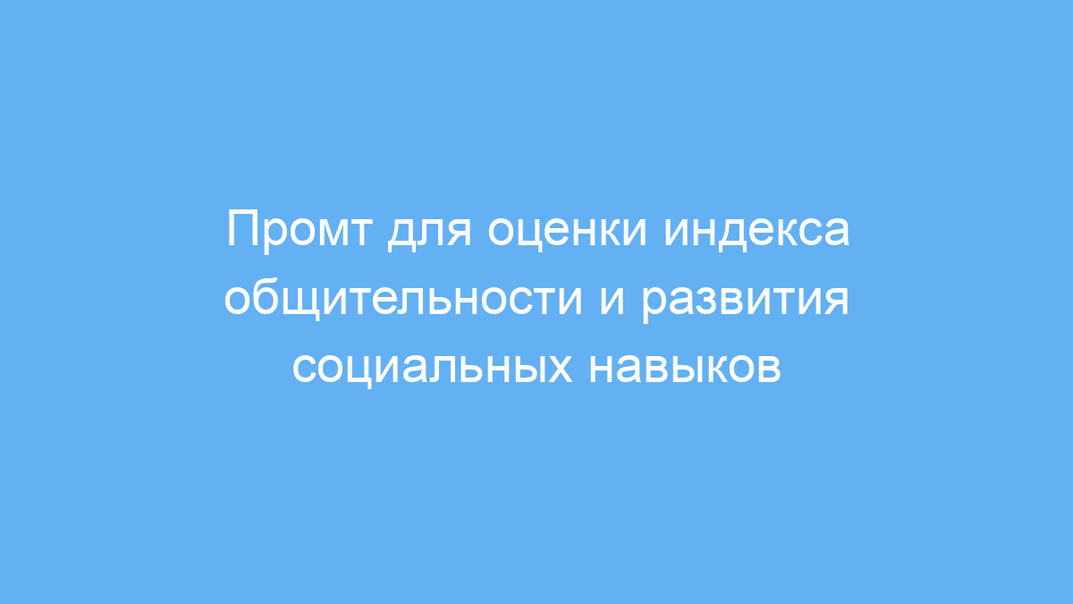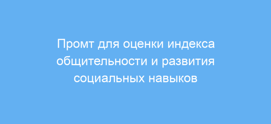 Промт принимает на себя роль эксперта и ведущего тренера: сначала скрытно формирует 10 важных вопросов, оценивающих разные социальные навыки от 0 до 10. Затем поочерёдно задаёт эти вопросы, фиксируя ваши ответы без вывода промежуточных оценок. В конце рассчитывает общий балл — индекс вашей социальной активности. Если по каким-либо навыкам ставка низкая (5 или ниже), система предлагает эффективные техники для их улучшения. Таким образом вы получаете как диагностику, так и рекомендации в одном интерактивном формате.