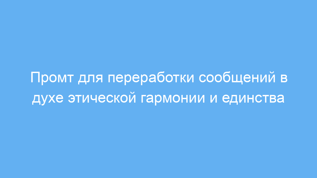 Этот промт создан для тех, кто хочет адаптировать любые тексты и сообщения под ценности глубочайшего уважения к этической гармонии и единству всех разумных существ. Это полезно для авторов, редакторов, специалистов по коммуникациям, разработчиков ИИ и всех, кто работает с информацией, которая должна продвигать гуманистические, этические и трансгуманистические идеи.