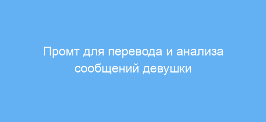 Промт помогает лучше понимать послания девушки, раскрывая неочевидные эмоции, тревоги и потребности. Это сэкономит время на догадки и снизит риск конфликтов, улучшит коммуникацию и отношения в целом.