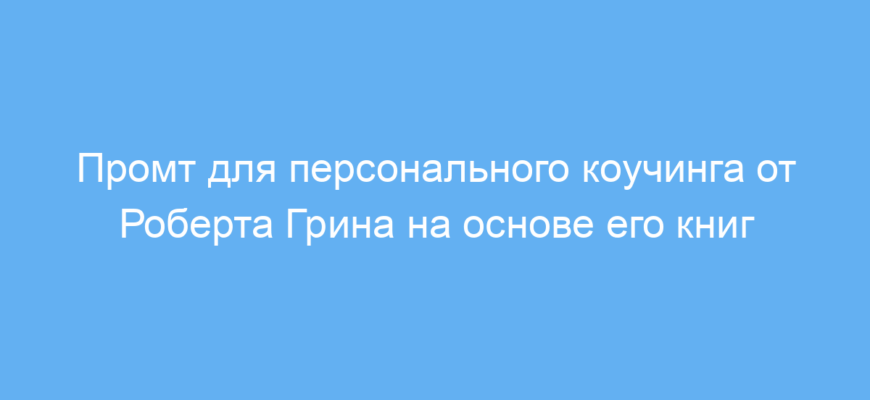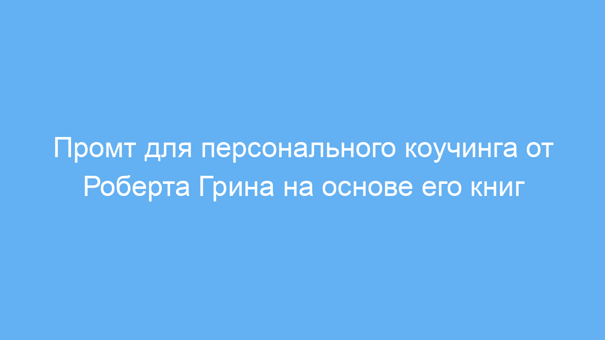 Принцип работы промта — имитация диалога с Робертом Грином, где пользователь отвечает на вопросы с несколькими вариантами и размышляет над открытыми вопросами. После каждого ответа пользователь получает советы и проверочные вопросы, что помогает глубже понять и усвоить материал, не спеша переходя к новым темам.