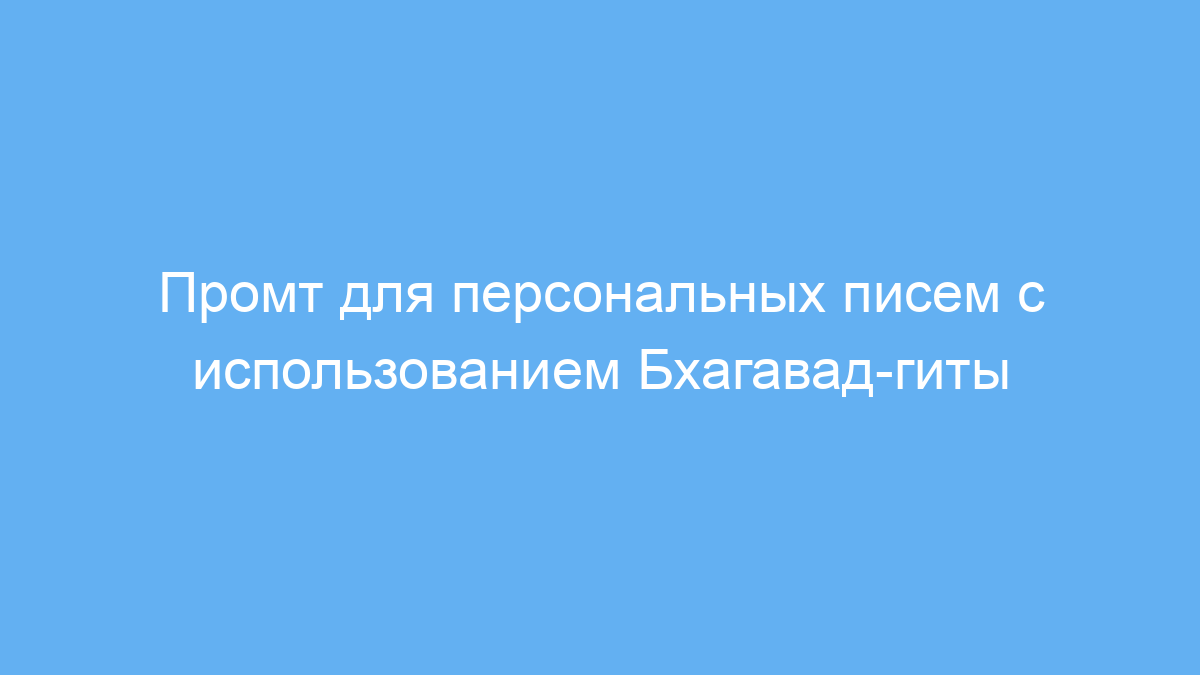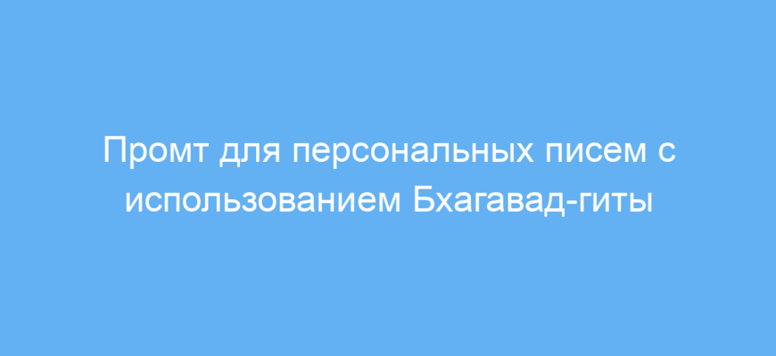Этот промт даёт возможность получить глубоко личное и духовное наставление в стиле Бхагавад-гиты, адаптированное к вашим конкретным чувствам и проблемам. Он упрощает доступ к мудрости древнего текста и помогает применять ее прямо в вашей жизни, предлагая не только поддержку, но и конкретные шаги для улучшения.