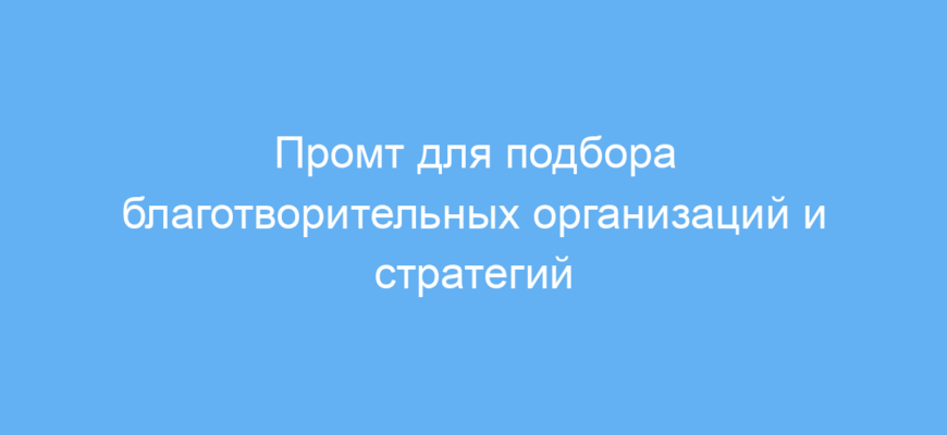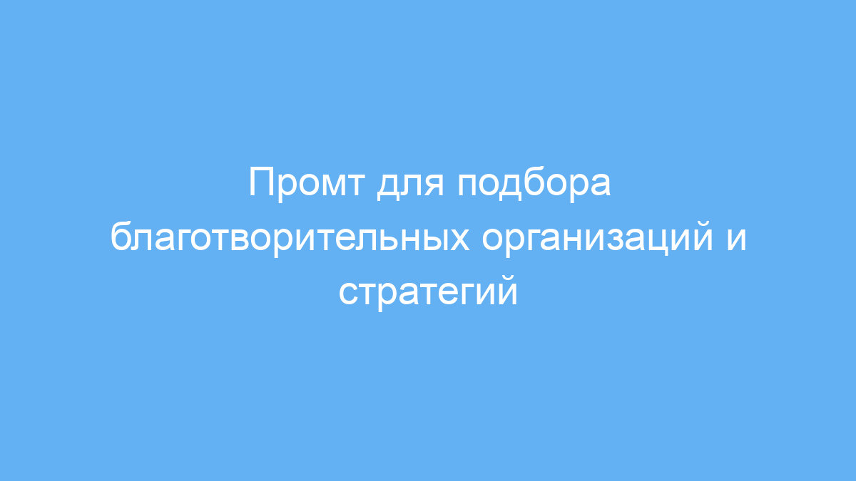 Работает промт через искусственный интеллект, который на основе запроса анализирует доступные данные, актуальные тренды и лучшие практики в сфере благотворительности. В ответ он предлагает рекомендации с учётом ваших целей и предпочтений, что делает процесс помощи максимально осознанным и результативным.