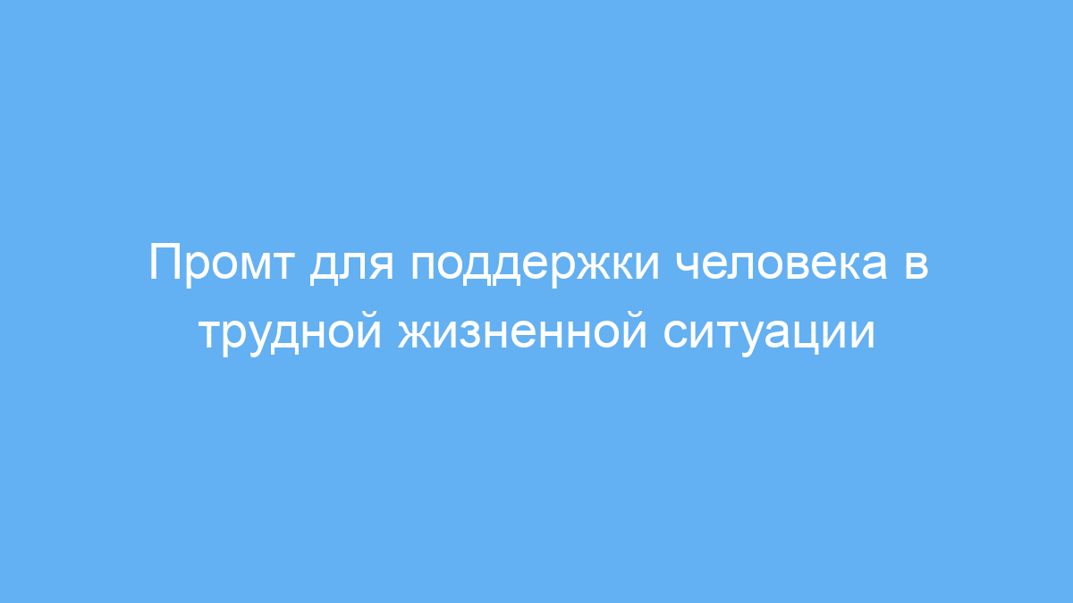 Данный промт значительно экономит время, помогая быстро получить сочувственные и продуманные ответы для поддержки в сложных жизненных ситуациях. Он помогает сделать общение с нейросетью более человечным и полезным, создавая атмосферу понимания и конструктивного поиска решений.