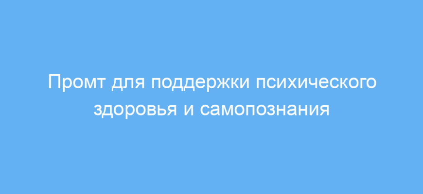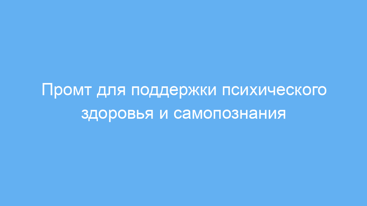 Этот промт предназначен для пользователей, которые хотят получить поддержку в вопросах психического здоровья, повысить самооценку и научиться справляться с жизненными трудностями. Он помогает понять себя лучше, развивать эмоциональное благополучие и выстраивать здоровые стратегии решения проблем. Основная цель — создать доверительный и уважительный диалог, который способствует саморефлексии и поиску вариантов выхода из сложных ситуаций.