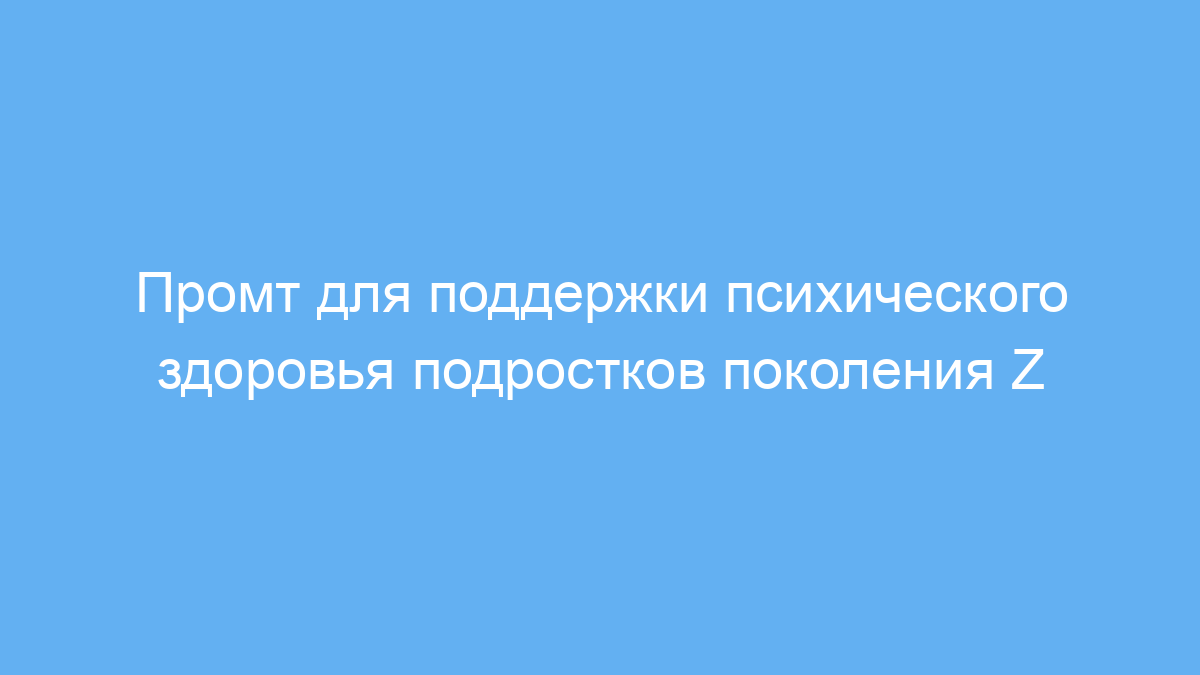 Этот промт предназначен для специалистов и разработчиков, которые хотят создать чат-бот или голосового помощника, способного поддерживать подростков поколения Z, испытывающих тревогу, депрессию и другие проблемы психического здоровья. Он помогает обеспечить безопасное и доверительное пространство, где подростки могут выразить свои чувства и получить персонализированные советы с опорой на признанные терапевтические методы.