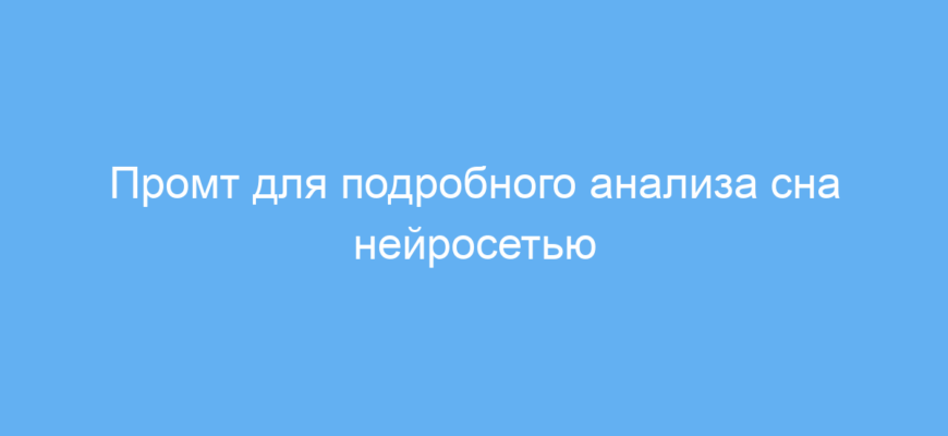 Этот промт создан для тех, кто хочет глубже понять смысл своих снов. Он поможет раскрыть символику, мифологию и психологические аспекты сна, используя возможности нейросети. Благодаря такому анализу можно получить подсказки о мыслях и чувствах, которые скрыты в подсознании.