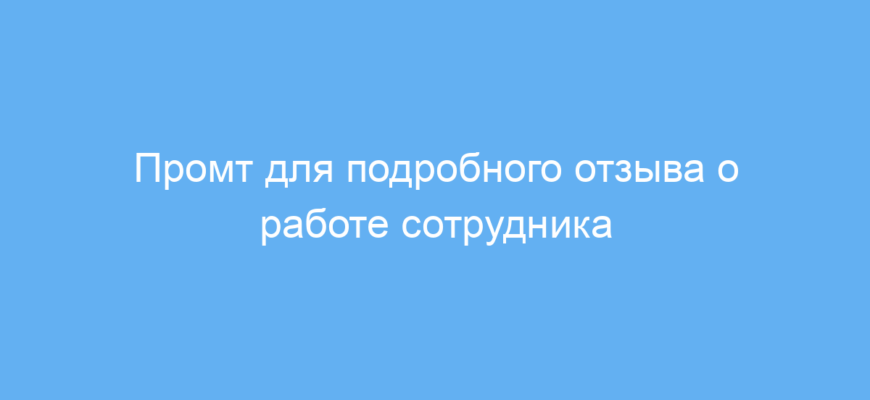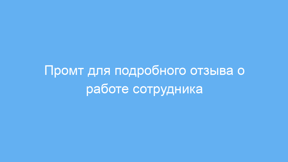 Этот промт предназначен для руководителей, HR-специалистов и менеджеров, которым необходимо написать конструктивный и детальный отзыв о работе сотрудника с определённой должностью. Он помогает структурировать оценку, выделить сильные стороны и области для развития, а также подчеркнуть значимость сотрудника в команде.