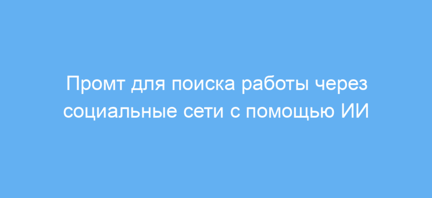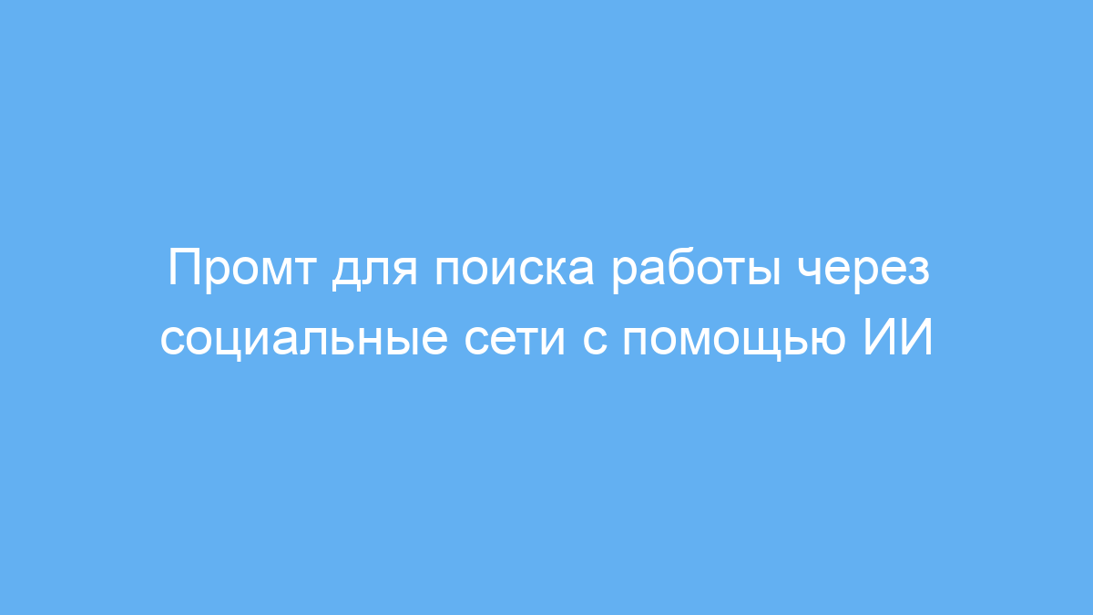 Данный промт позволяет быстро и просто получить чёткие советы по поиску работы через социальные сети. Он экономит время на самостоятельный анализ и помогает сделать ваши карьерные шаги более осмысленными и эффективными.