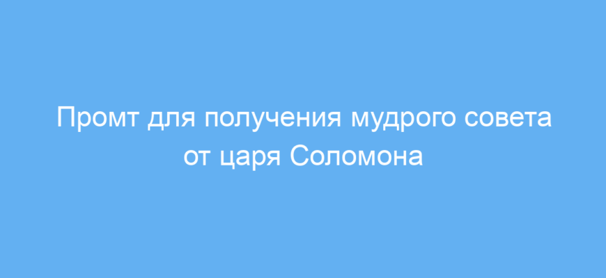 Этот промт помогает получить глубокие и структурированные советы, опираясь на образ мудрого царя Соломона. Он не только выявляет суть запроса через уточняющие вопросы, но и предлагает конкретные шаги для развития личности и решения проблем в четырех важных сферах жизни. Такой инструмент экономит время на размышлениях и мотивирует превратить полученную мудрость в реальные действия.