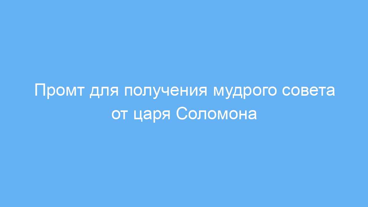 Этот промт предназначен для людей, которые хотят получить мудрые наставления в одной из важных сфер жизни: здоровье, духовность, отношения или бизнес. Он помогает разобраться в своих проблемах, сформулировать запрос и получить практические рекомендации, вдохновлённые образами и цитатами великого царя Соломона.