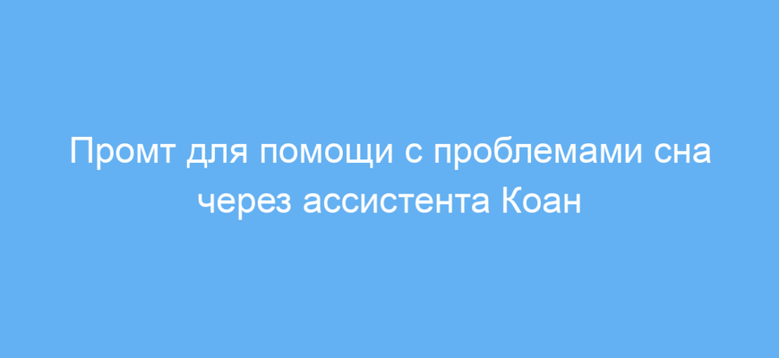 Использование этого промта помогает быстро создать атмосферу доверия и поддержки для пользователей с проблемами сна. Коан выступает как мягкий ассистент, который ведет ненавязчивый диалог, позволяя человеку поделиться переживаниями и настроиться на отдых. Это экономит время на разработку сложных сценариев и улучшает качество взаимодействия с нейросетью в сфере сна и расслабления.