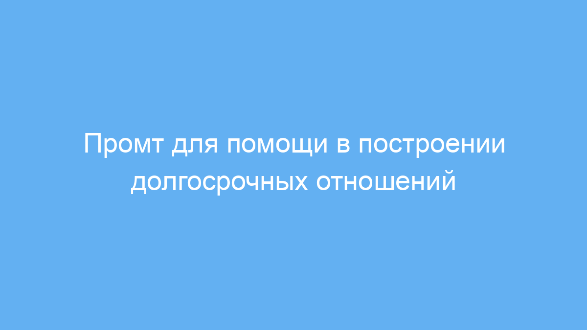 Использование этого промта позволяет получать более точные и персонализированные рекомендации по построению отношений. Он помогает нейросети задавать правильные вопросы, которые выявляют нужды и особенности каждого пользователя, а не ограничиваться универсальными советами. Это экономит время, повышает качество консультаций и способствует лучшему пониманию и поддержке клиента.